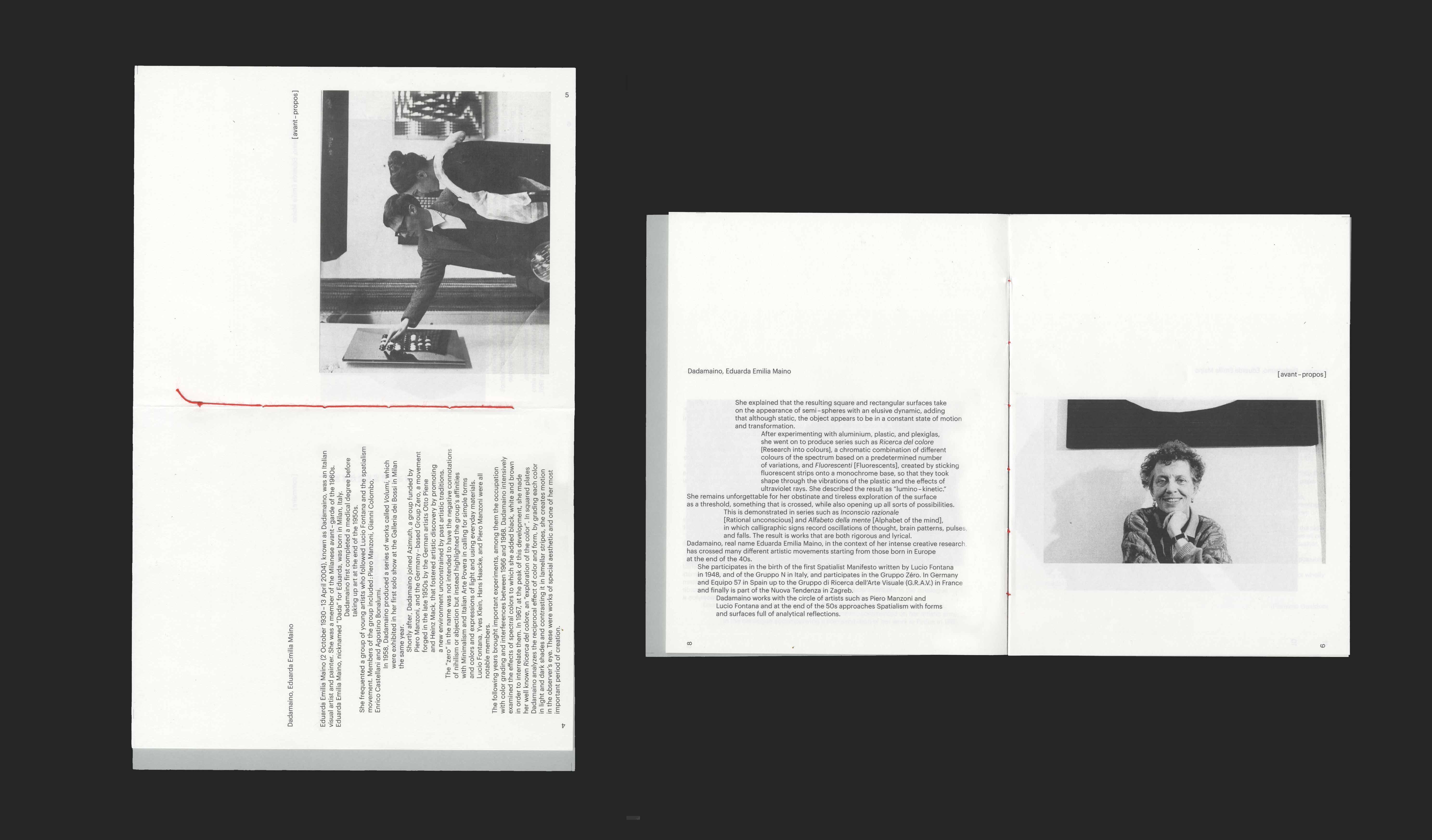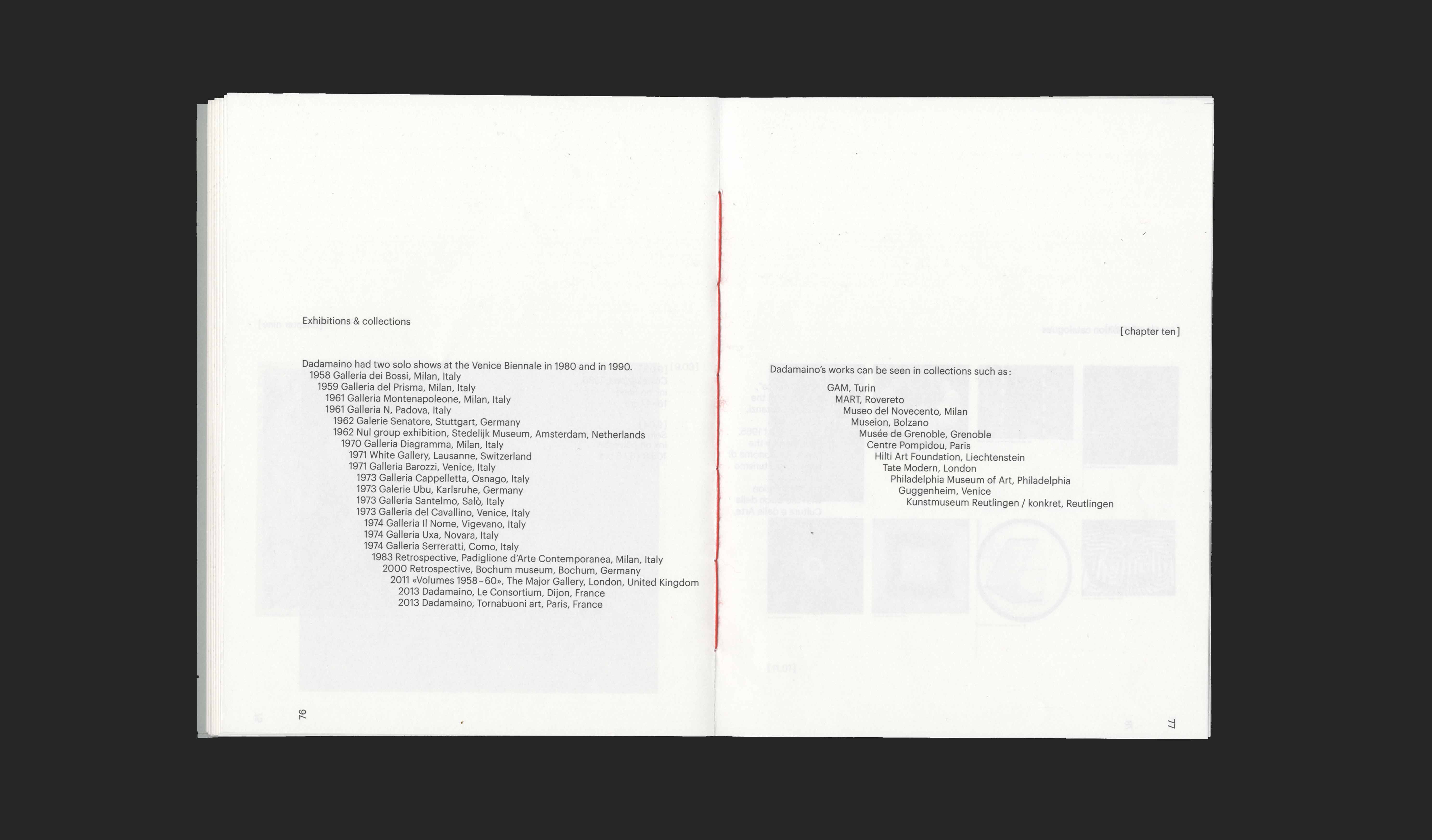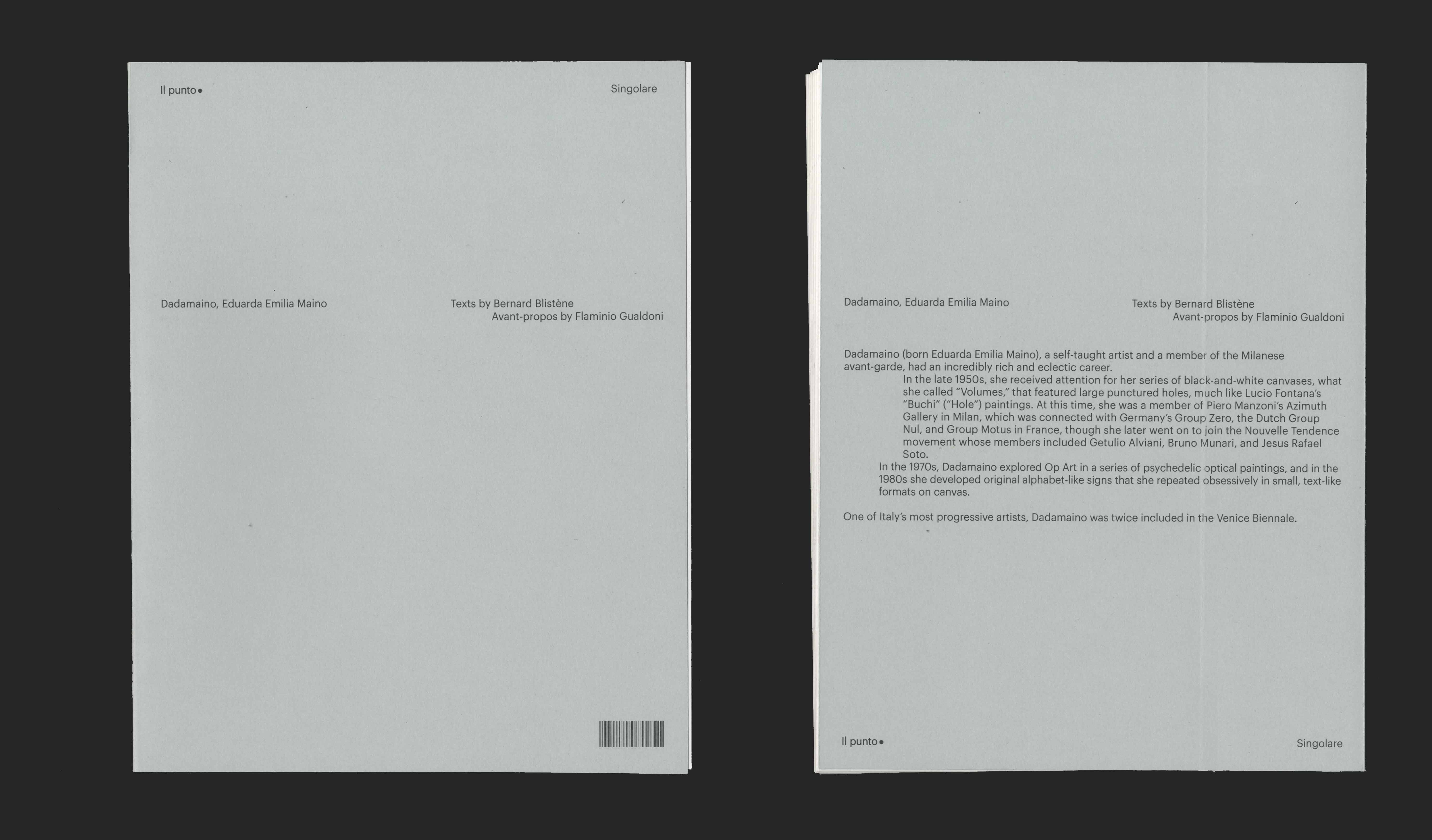 Editorial design of a monograph on the Italian artist Dadamaino, for the (fictional) publishing house Il Punto.