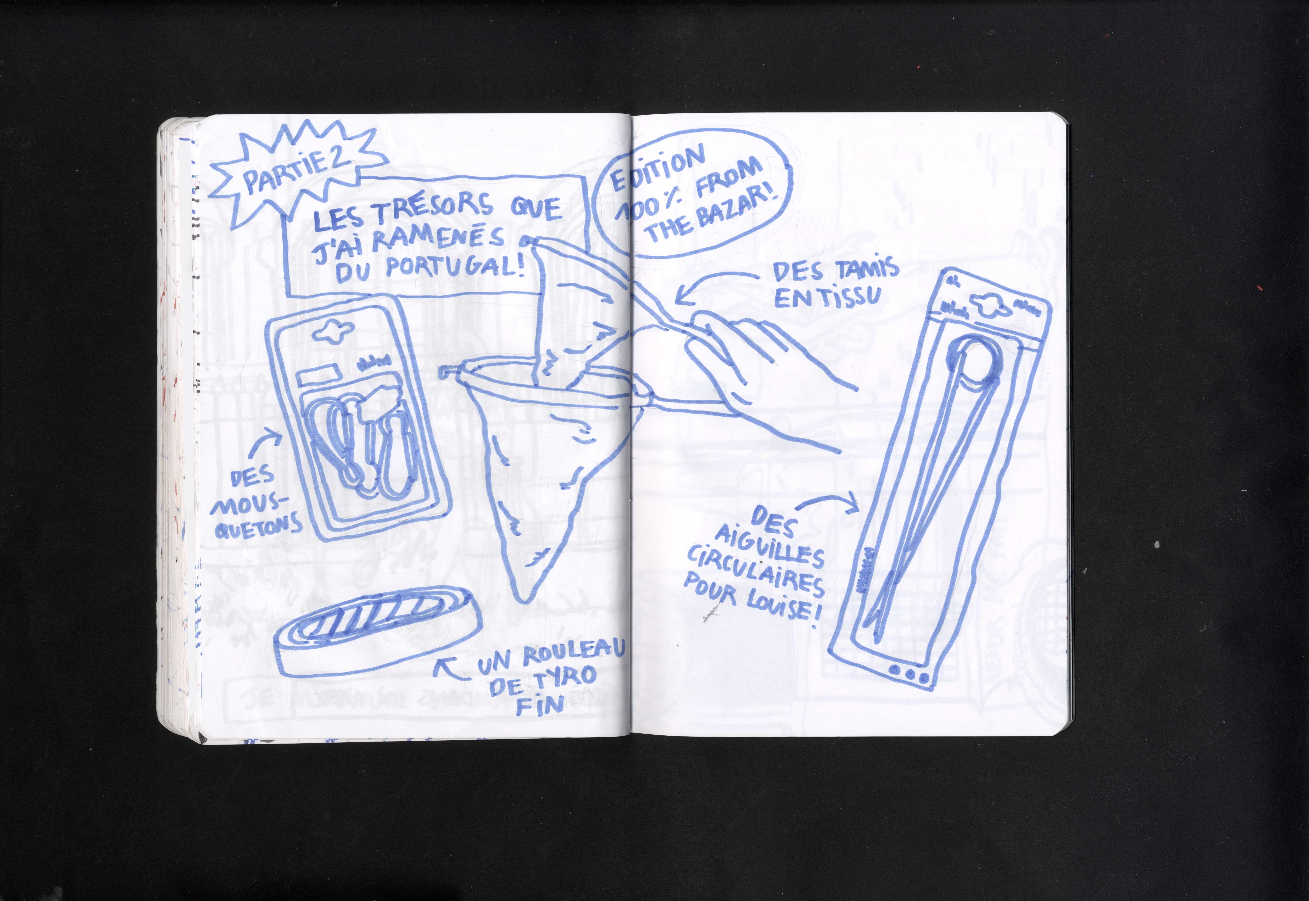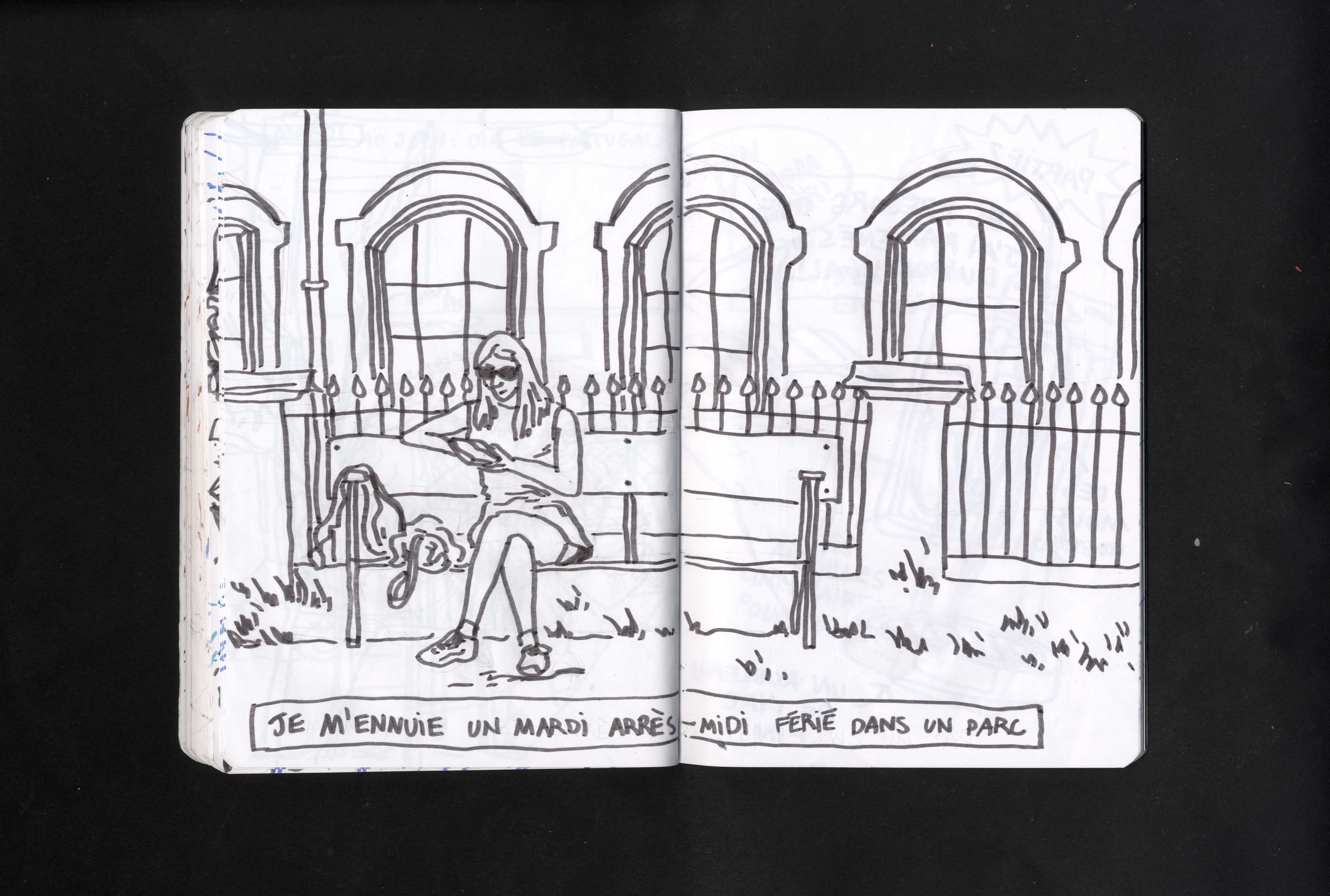 Always in my bag, along with its two or three primary-colored felt-tip pens, my notebook accompanies me every day. Mostly filled with loose ideas, I also write down scenes from my daily life, reassuring myself that I'll always have a record of each nice moment that arrives.